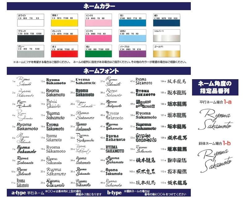 ネーム入りもメールで希望デザイン打合せの上、価格はそのままで対応させていただきます。